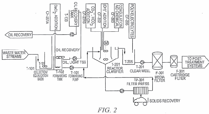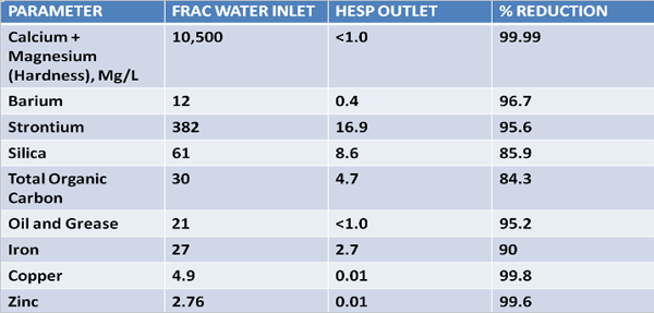 HESP is based on collecting and equalizing waste water from several sites, then raising the pH of the wastewater to the optimum level and coagulating and precipitating the contaminants, resulting in purified water which can be either reused in the frac operation, or further purified for return to the environment. Precipitated solids are collected, filtered out and solidified as dry material. Here’s an example of what HESP can do.